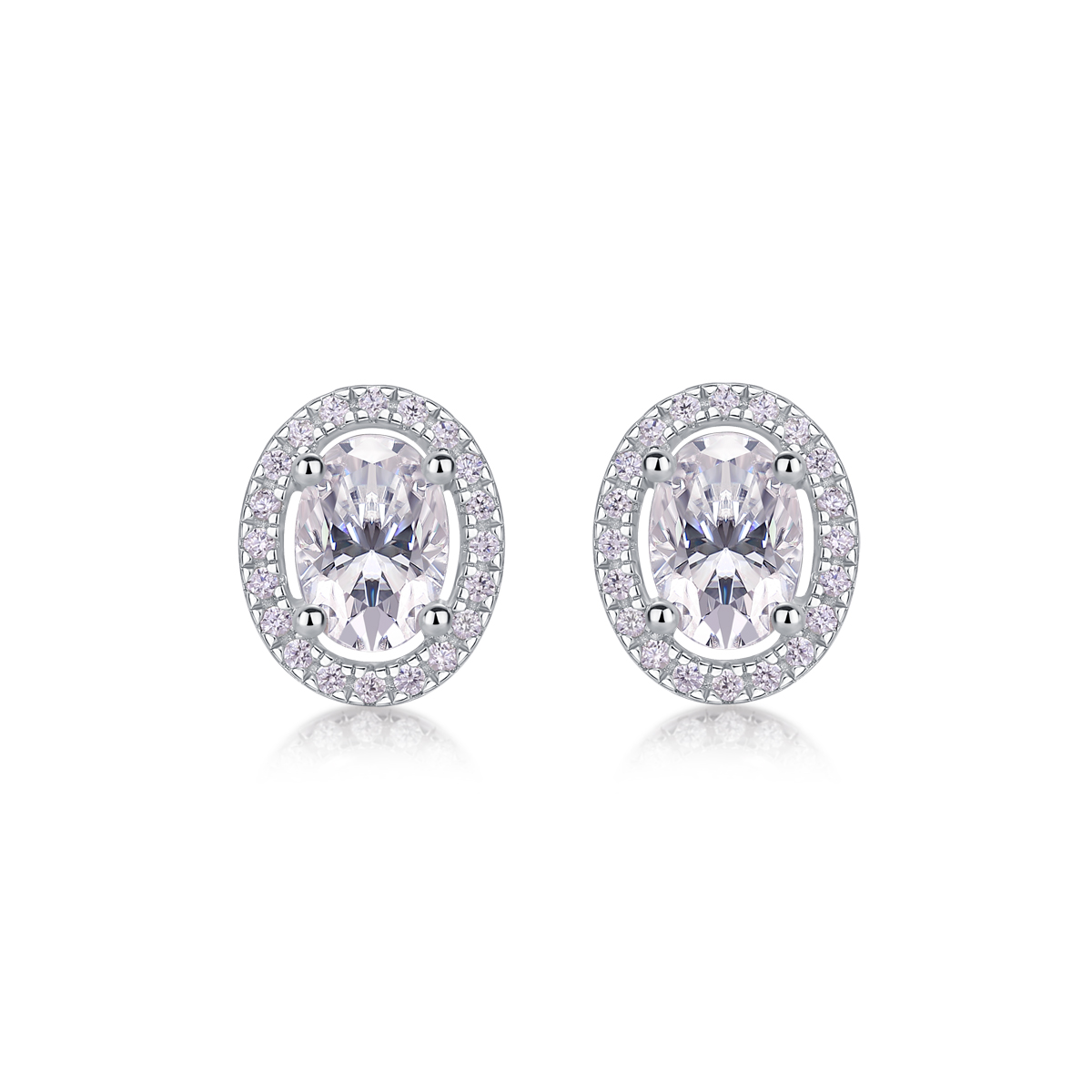 These earrings feature oval-shaped moissanite stones set in a classic stud design. The gemstones are crafted to provide a refined and elegant appearance suitable for various occasions.
